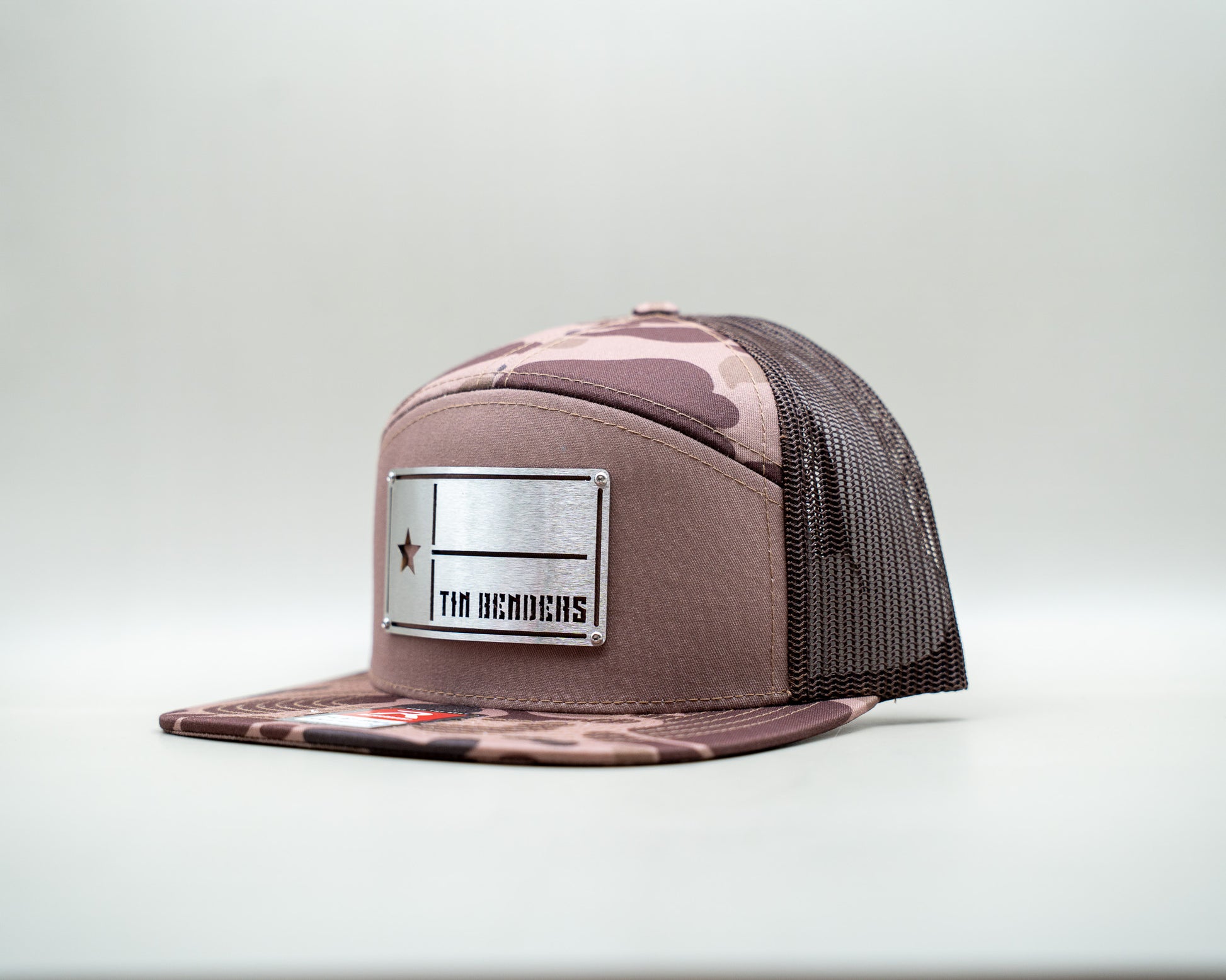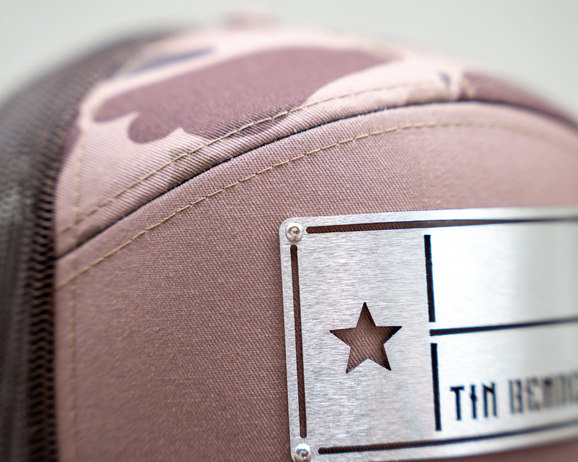 Part of the exclusive Tin Benders Aluminum Plate Collection, this rugged camo trucker hat blends hard-working style with true Texas pride. Featuring a brown camo crown and bill, paired with a dark brown mesh back for breathability, it’s made to last. The front showcases a precision-cut aluminum Texas flag plate with “Tin Benders” boldly stamped into the design — a tribute to our craftsmanship in metal fabrication. Durable, authentic, and built for everyday wear, this hat is where grit meets style.