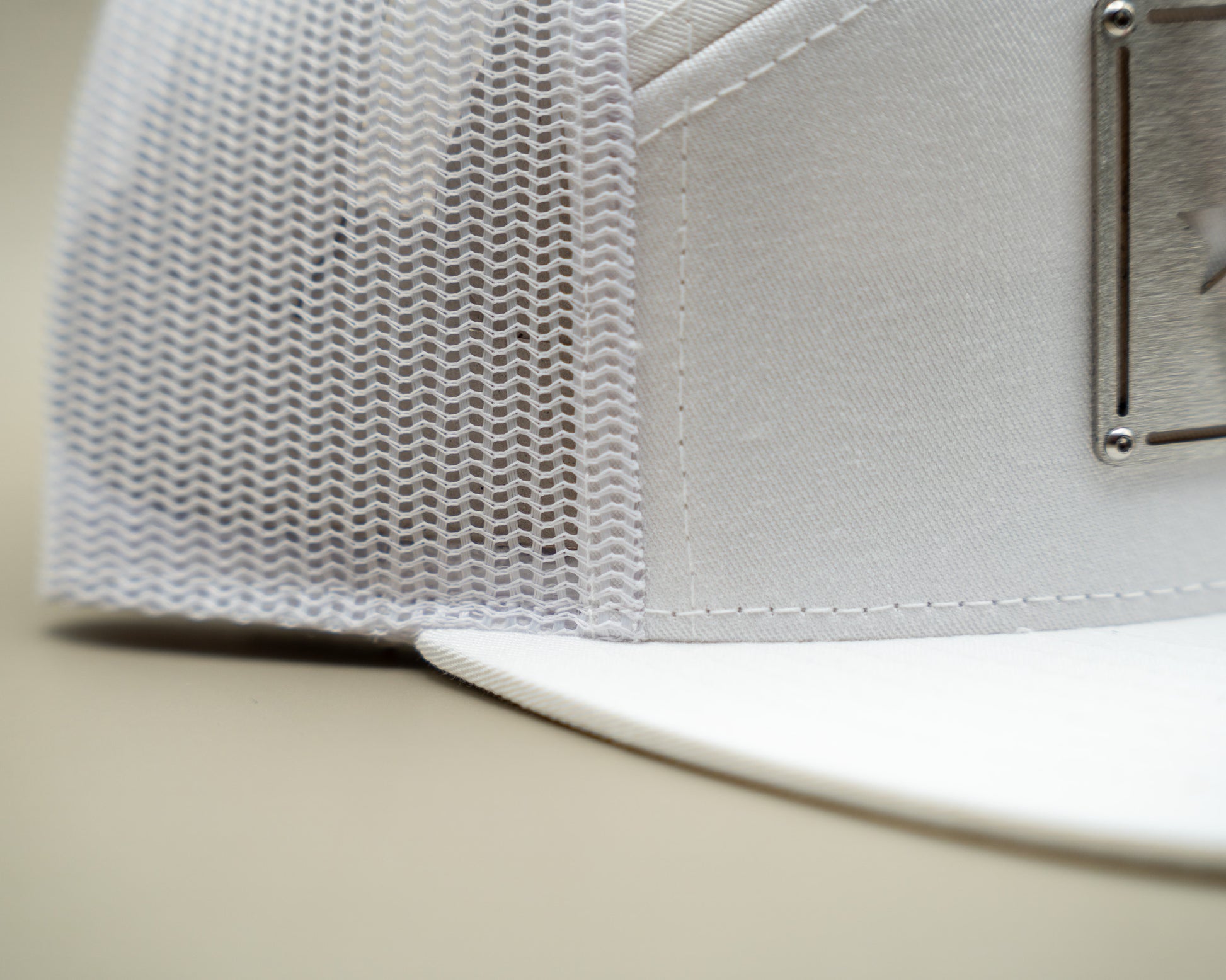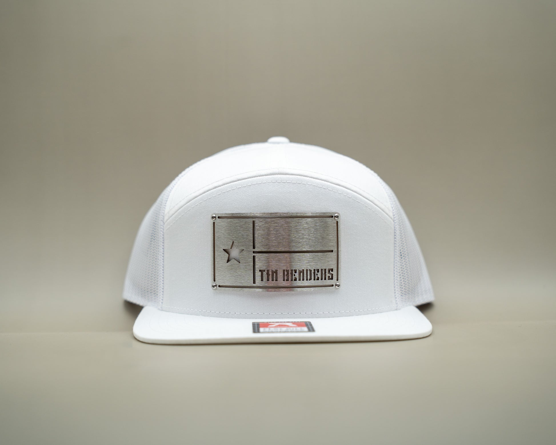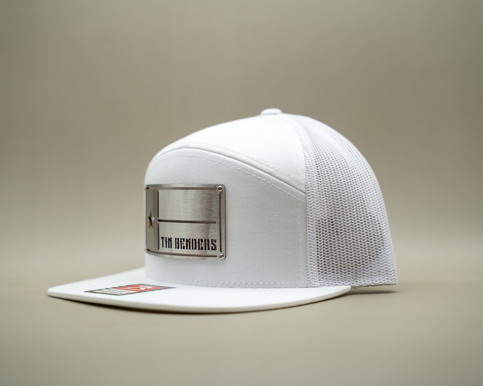 Part of the Tin Benders Aluminum Plate Collection, the Pure Steel hat is a clean and bold take on Texas pride. Featuring a solid white crown and bill with a breathable mesh back, this cap is crisp, versatile, and built for everyday wear. Front and center is the signature aluminum Texas flag plate, with “Tin Benders” precision-cut into the design — a proud nod to our craftsmanship in metal fabrication. Sleek and durable, this hat is as tough as steel and sharp as your style.
