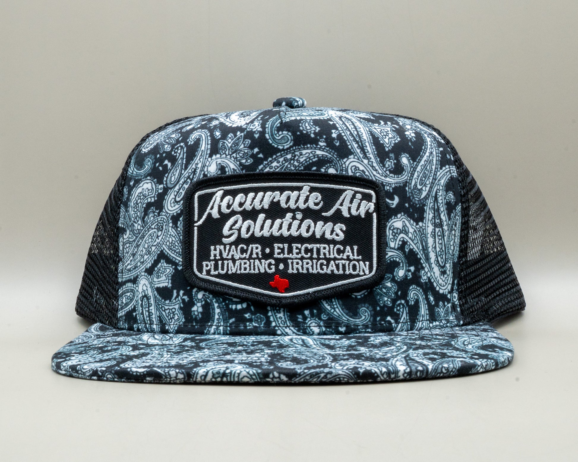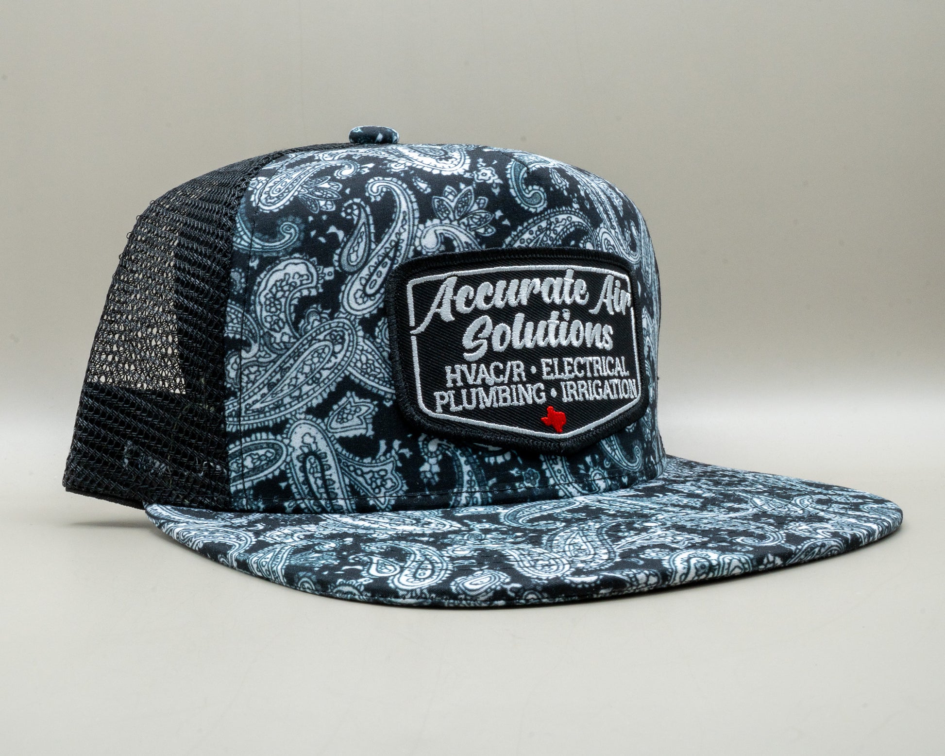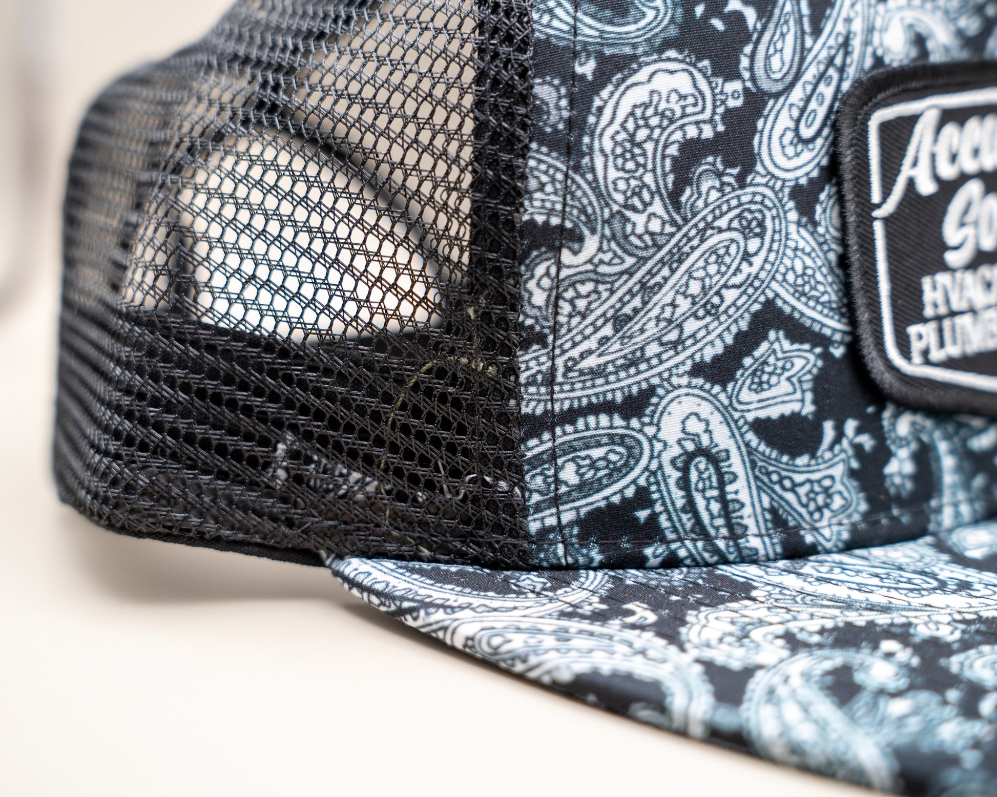 Western roots meet modern edge in Outlaw Standard. With a bold black and white paisley front and bill, black trucker mesh, and a clean black-and-white logo patch, this flat bill snapback doesn’t follow trends—it sets them. Classic. Gritty. Unapologetic.
