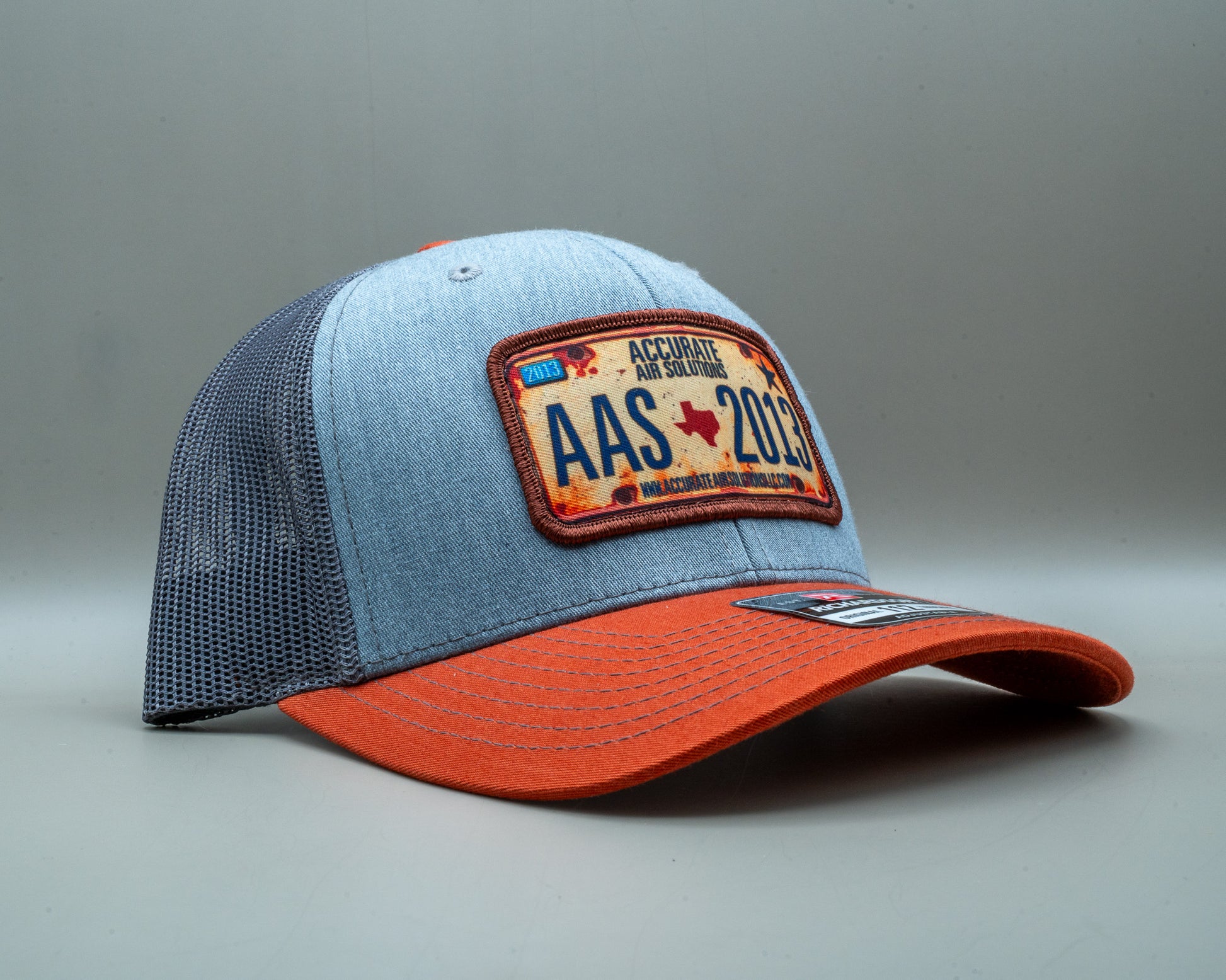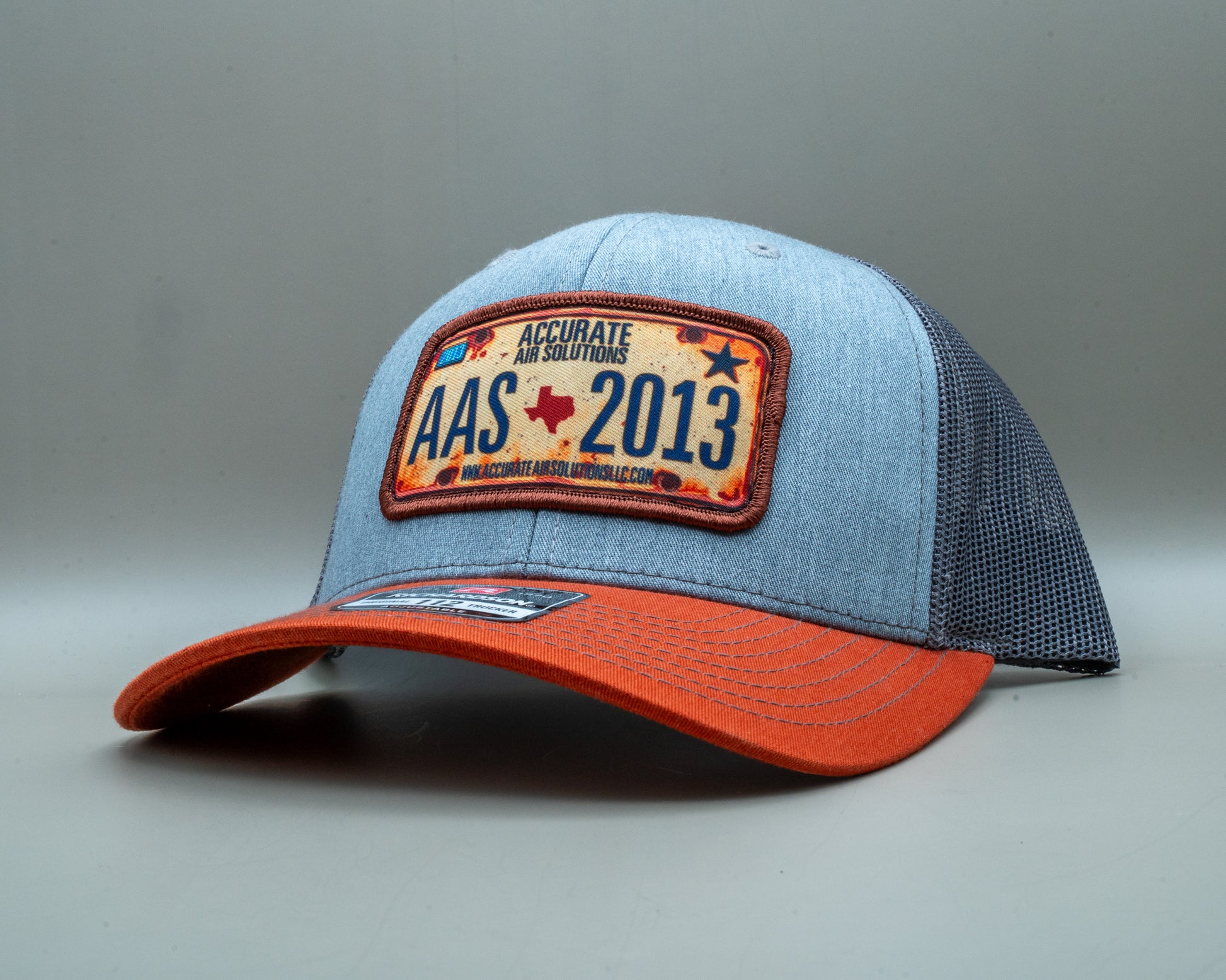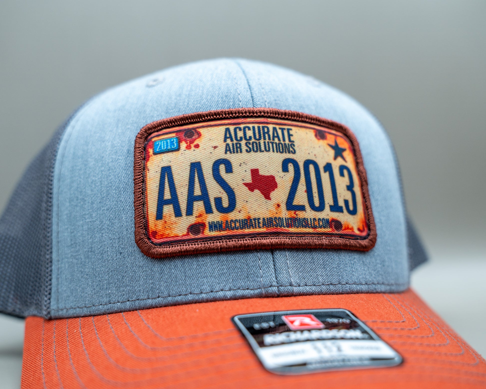 The Rusted Ember brings contrast with control—gray front, darker gray mesh back, and a burnt orange curved bill that adds just the right amount of heat. Finished with our Accurate Air Solutions license plate patch, this Richardson 112 is all-day-ready.