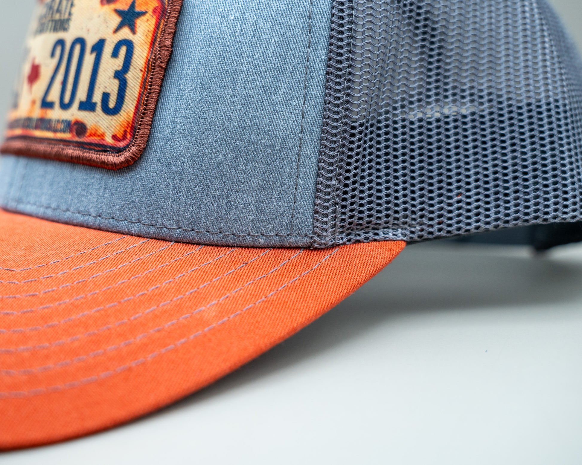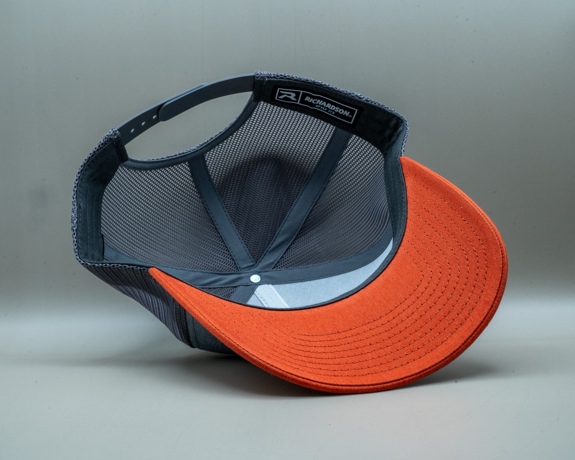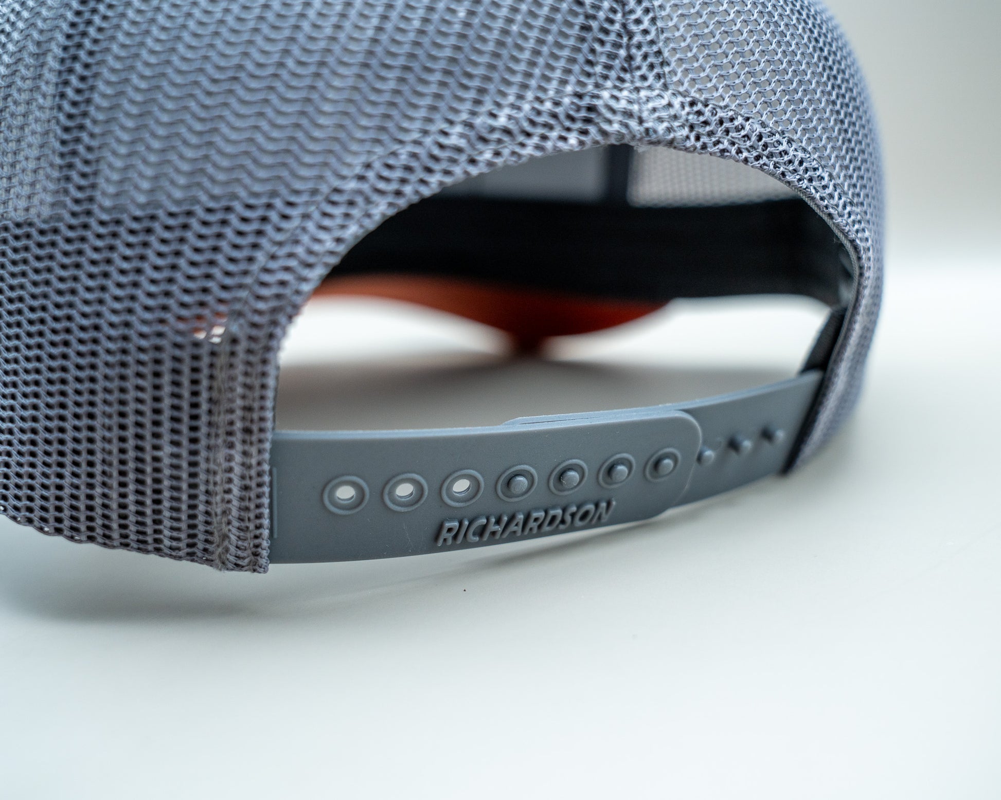 The Rusted Ember brings contrast with control—gray front, darker gray mesh back, and a burnt orange curved bill that adds just the right amount of heat. Finished with our Accurate Air Solutions license plate patch, this Richardson 112 is all-day-ready.
