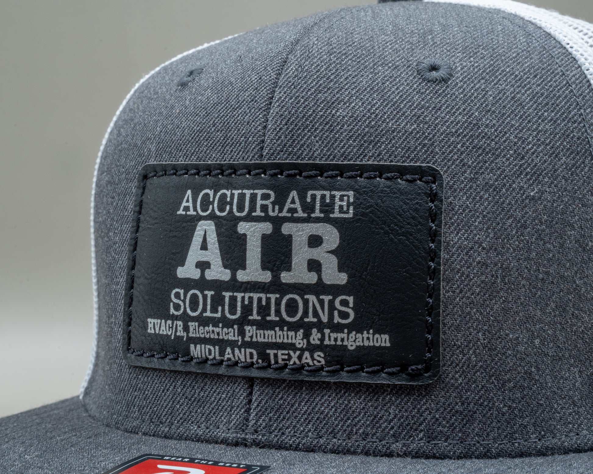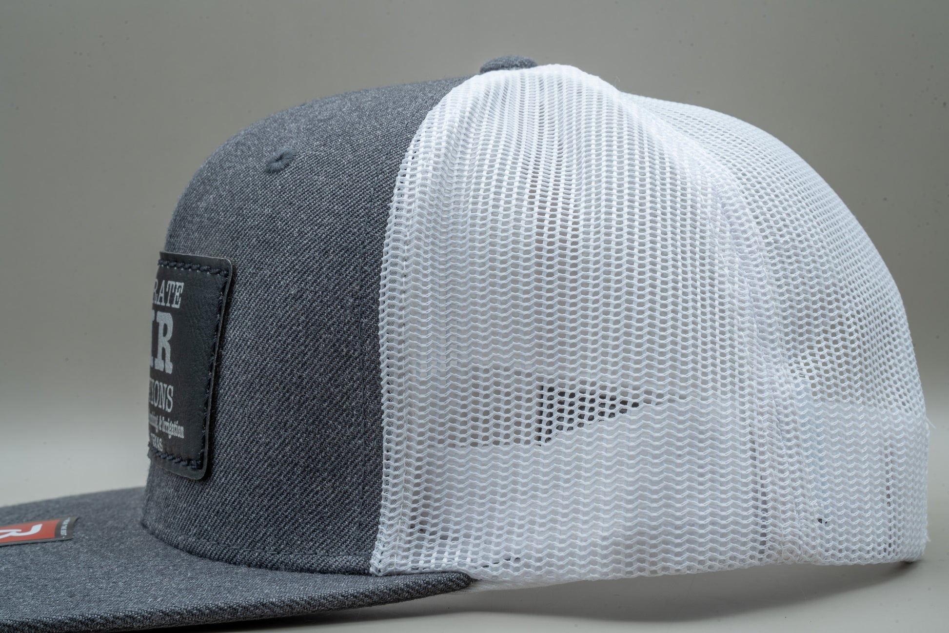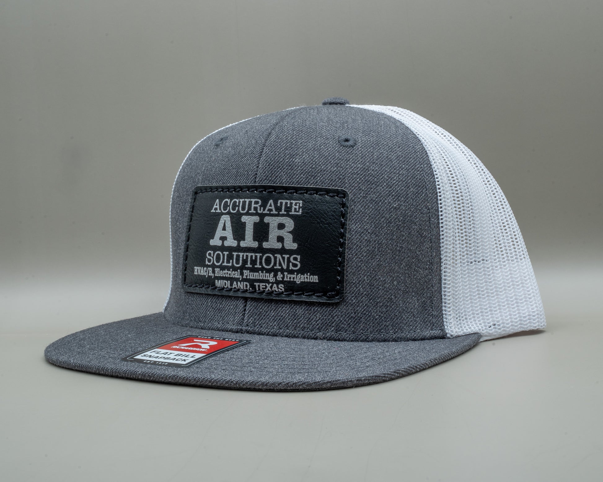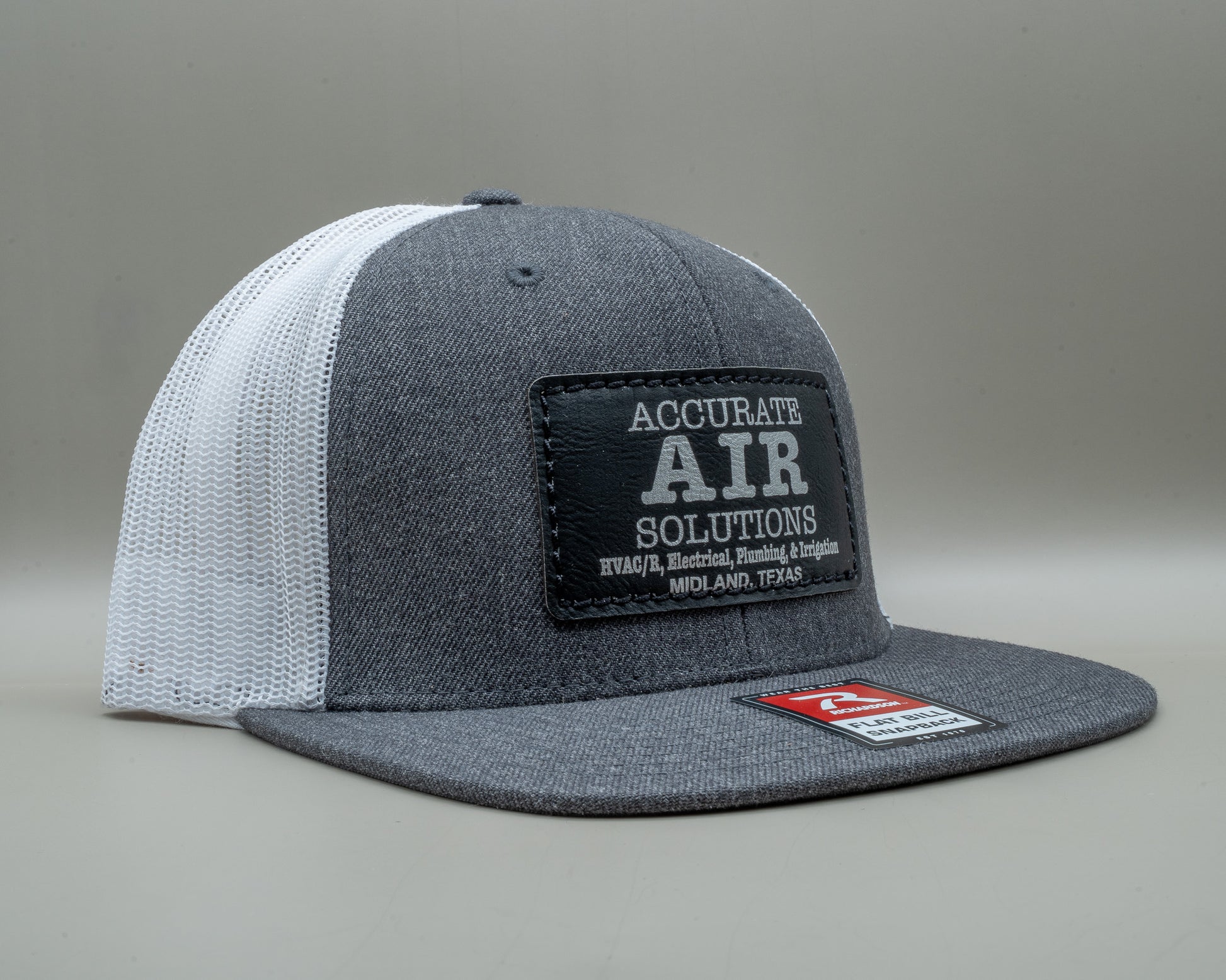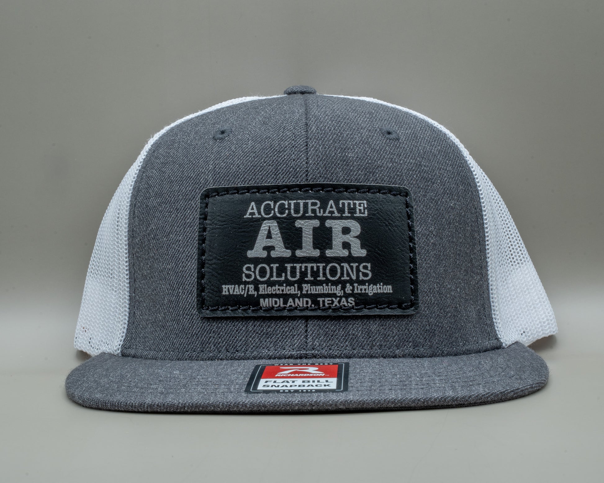 A sleek, versatile snapback that pairs dark gray style with a crisp white mesh back for breathable comfort. Featuring a custom black leather Accurate Air Solutions patch, this hat is perfect for adding a touch of professional edge to any casual look. Whether you're out on a job site or kicking back on a day off, the Gray Matter Snapback is your go-to for stylish durability.